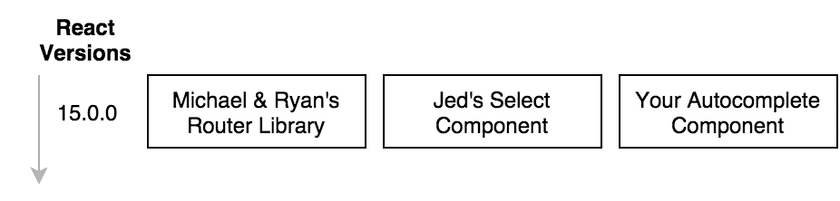 If you try to upgrade your component to 16.0.0 you might find that your application no longer works if you still have other dependencies. E.g. if Ryan’s and Jed’s components are only compatible with 15.x.x.